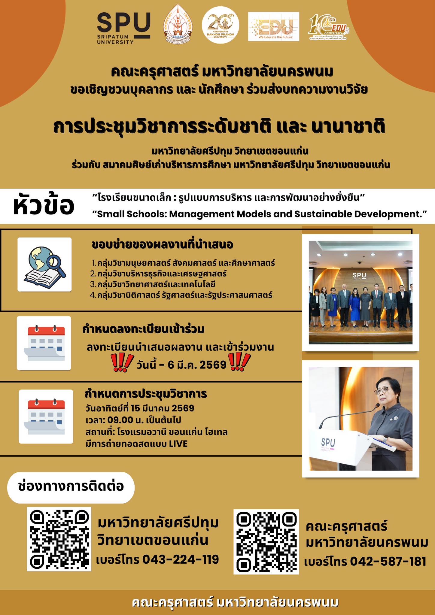 คณะครุศาสตร์ขอเชิญชวนผู้ที่สนใจในประเด็นการพัฒนาการศึกษา เข้าร่วมแลกเปลี่ยนเรียนรู้ใน หัวข้อ “โรงเรียนขนาดเล็ก : รูปแบบการบริหาร และการพัฒนาอย่างยั่งยืน” (Small Schools: Management Models and Sustainable Development) โดยพบกับเหล่าวิทยากรผู้ทรงคุณวุฒิระดับประเทศ อาทิเช่น