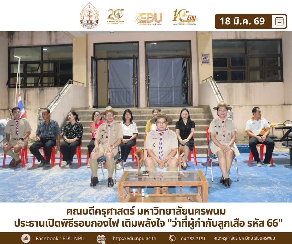 ผศ.ดร.เกรียงไกร ผาสุตะ คณบดีคณะครุศาสตร์ เป็นประธานใน พิธีเปิดกิจกรรมรอบกองไฟ พร้อมคณะผู้บริหาร ประกอบด้วย ผศ.ดร.สุภาวรรณ ฤากำลัง ผู้ช่วยคณบดีฝ่ายพัฒนาหลักสูตร และวิชาชีพครู ,ผศ.ดร.นิดาพร อาจประจญ รองผู้อำนวยการฝ่ายบุคลากร และงบประมาณ โรงเรียนสาธิตฯ และ อาจารย์ ดร.ระวีวัฒน์ ศรีประดิษฐ์ ผู้ช่วยคณบดีฝ่ายกิจการนักศึกษาและวิเทศสัมพันธ์ พร้อมอาจารย์ และเจ้าหน้าที่ที่เกี่ยวข้องเข้าร่วมพิธีในครั้งนี้ ซึ่งถือเป็นกิจกรรมทางลูกเสือที่สำคัญในการสร้างความสามัคคีและหลอมรวมจิตใจของชาวลูกเสือเข้าด้วยกัน บรรยากาศภายใต้แสงไฟท่ามกลางความเงียบสงบเต็มไปด้วยความศักดิ์สิทธิ์และมิตรภาพ นักศึกษาได้ร่วมกันแสดงออกถึงทักษะและความคิดสร้างสรรค์ผ่านกิจกรรมรอบกองไฟอย่างสนุกสนาน