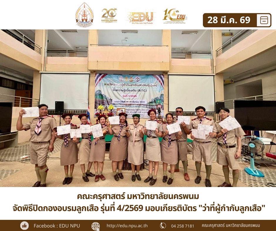 ในการนี้ ผู้ช่วยศาสตราจารย์ ดร.เกรียงไกร ผาสุตะ คณบดีคณะครุศาสตร์ มอบหมายให้ ผู้ช่วยศาสตราจารย์ ดร.สุภาวรรณ ฤากำลัง ผู้ช่วยคณบดีฝ่ายพัฒนาหลักสูตรและวิชาชีพครู เป็นตัวแทนคณะเข้าร่วมพิธีและร่วมแสดงความยินดีกับนักศึกษาที่สำเร็จการอบรม พร้อมมอบเกียรติบัตรเพื่อรับรองความเป็น "ว่าที่ผู้กำกับลูกเสือ"