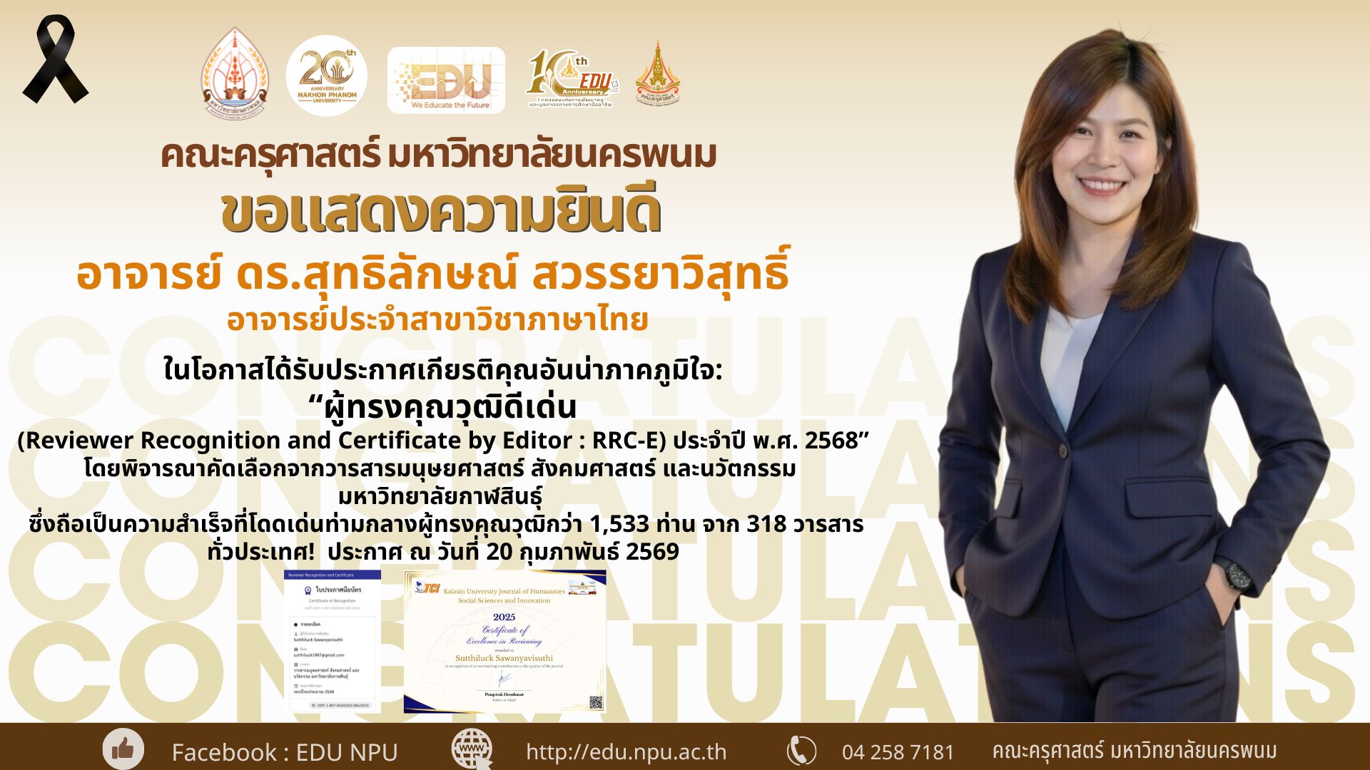 âāļāļđāđāļāļĢāļāļāļļāļāļ§āļļāļāļīāļāļĩāđāļāđāļ (Reviewer Recognition and Certificate by Editor : RRC-E) āļāļĢāļ°āļāļģāļāļĩ āļ.āļĻ. 2568â āđāļāļĒāļāļīāļāļēāļĢāļāļēāļāļąāļāđāļĨāļ·āļāļāļāļēāļāļ§āļēāļĢāļŠāļēāļĢāļĄāļāļļāļĐāļĒāļĻāļēāļŠāļāļĢāđ āļŠāļąāļāļāļĄāļĻāļēāļŠāļāļĢāđ āđāļĨāļ°āļāļ§āļąāļāļāļĢāļĢāļĄ āļĄāļŦāļēāļ§āļīāļāļĒāļēāļĨāļąāļĒāļāļēāļŽāļŠāļīāļāļāļļāđ