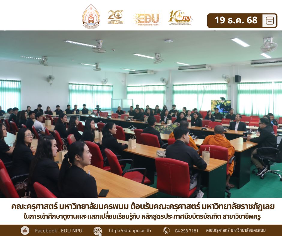 เวลา 13.30 น. เป็นต้นไป ณ ห้องประชุมจตุรวิทย์ ชั้น 4 อาคารจตุรวิทย์คณะครุศาสตร์ มหาวิทยาลัยนครพนม