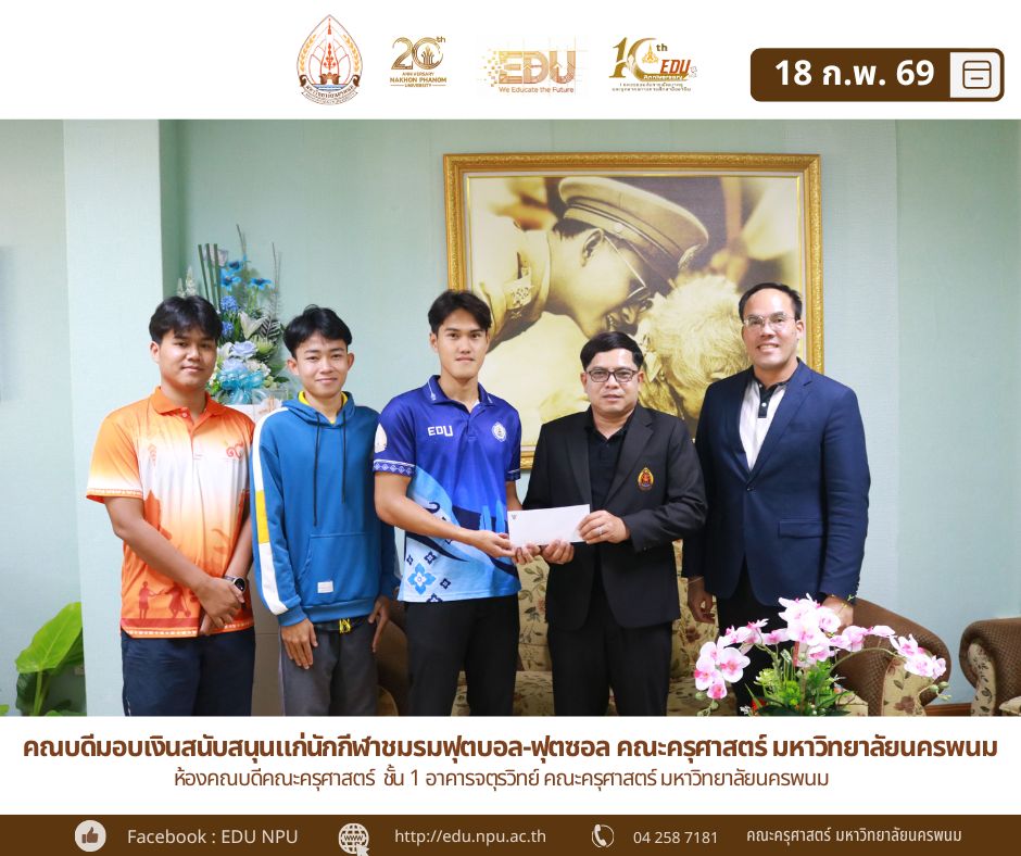 คณบดีคณะครุศาสตร์ ได้มอบเงินสนับสนุนให้กับนักกีฬาชมรมฟุตบอล-ฟุตซอล