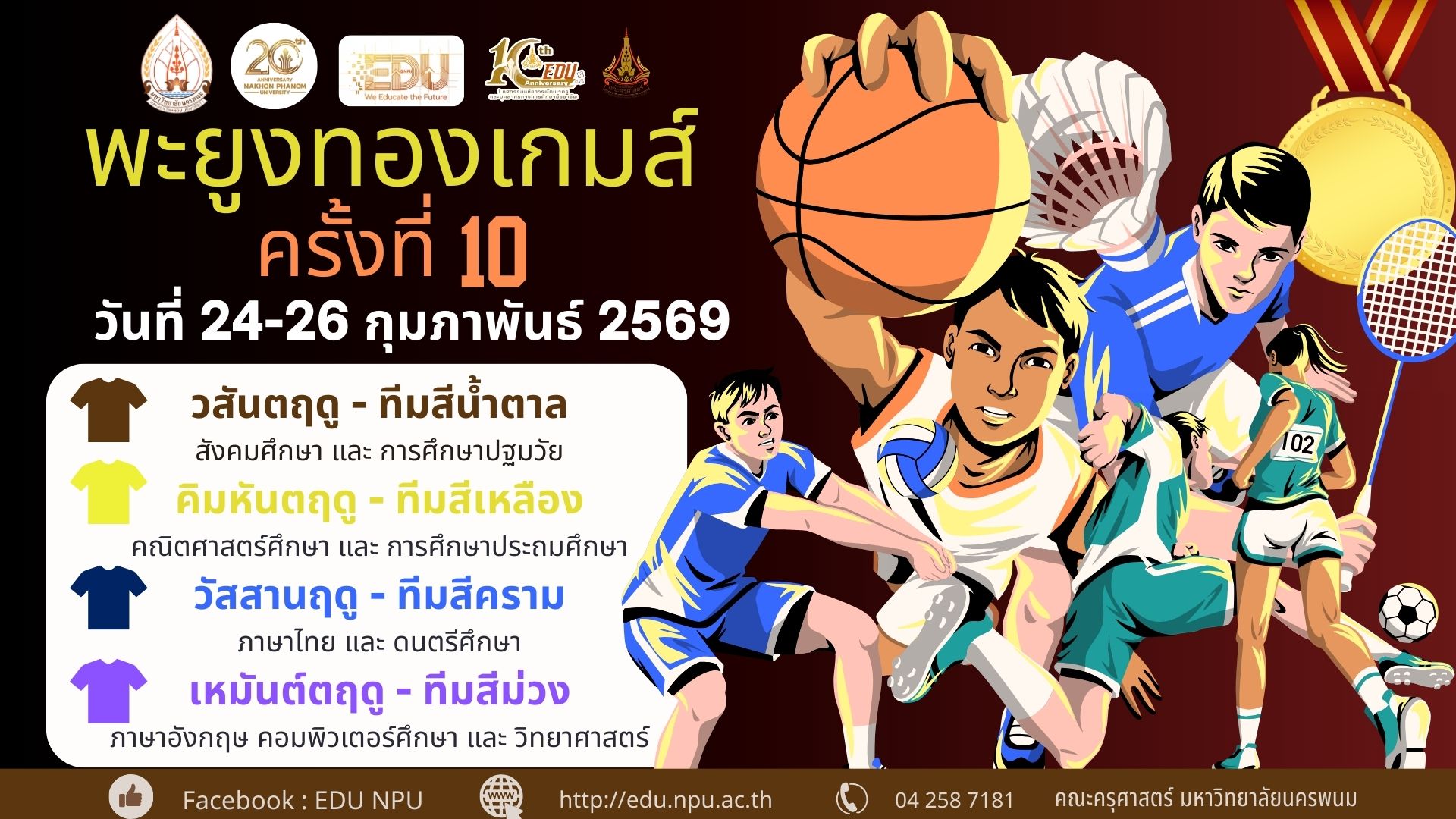 ร่วมส่งแรงใจให้กับนักกีฬาทุกคนที่ทุ่มเทฝึกซ้อมและแข่งขันอย่างเต็มที่ เพื่อสร้างชื่อเสียงและความภาคภูมิใจให้กับคณะครุศาสตร์ มหาวิทยาลัยนครพนม