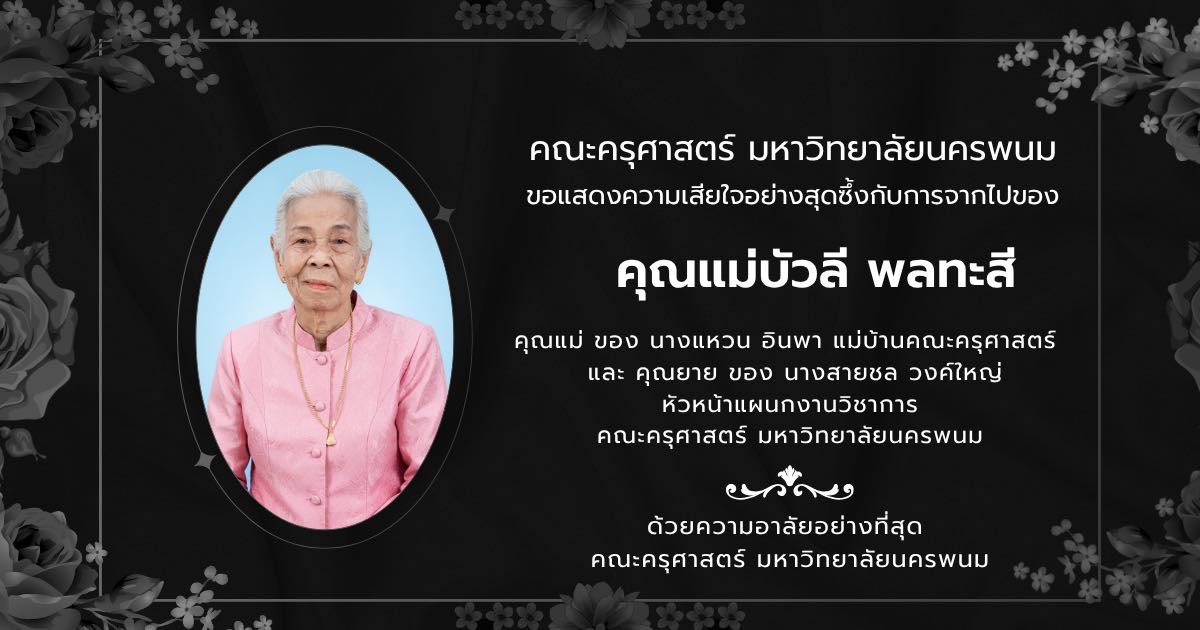 คุณแม่ ของ นางแหวน อินพา แม่บ้านคณะครุศาสตร์ และ คุณยาย ของ นางสายชล วงค์ใหญ่ หัวหน้าแผนกงานวิชาการ คณะครุศาสตร์ มหาวิทยาลัยนครพนม