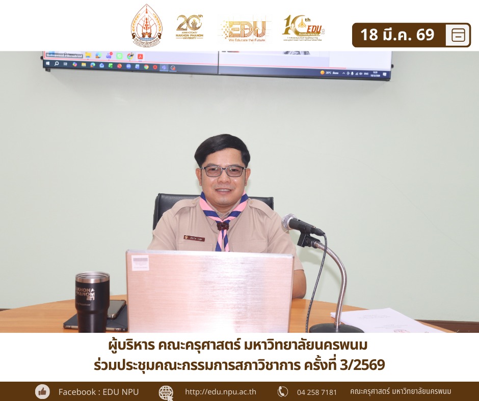 ผู้ช่วยศาสตราจารย์ ดร.เกรียงไกร ผาสุตะ คณบดีคณะครุศาสตร์ พร้อมด้วย ผู้ช่วยศาสตราจารย์ ดร.พิจิตรา ธงพานิช รองคณบดีฝ่ายบัณฑิตศึกษา เข้าร่วมการประชุม "คณะกรรมการสภาวิชาการ มหาวิทยาลัยนครพนม ครั้งที่ 3/2569" เพื่อพิจารณาและขับเคลื่อนวาระสำคัญด้านวิชาการของมหาวิทยาลัย