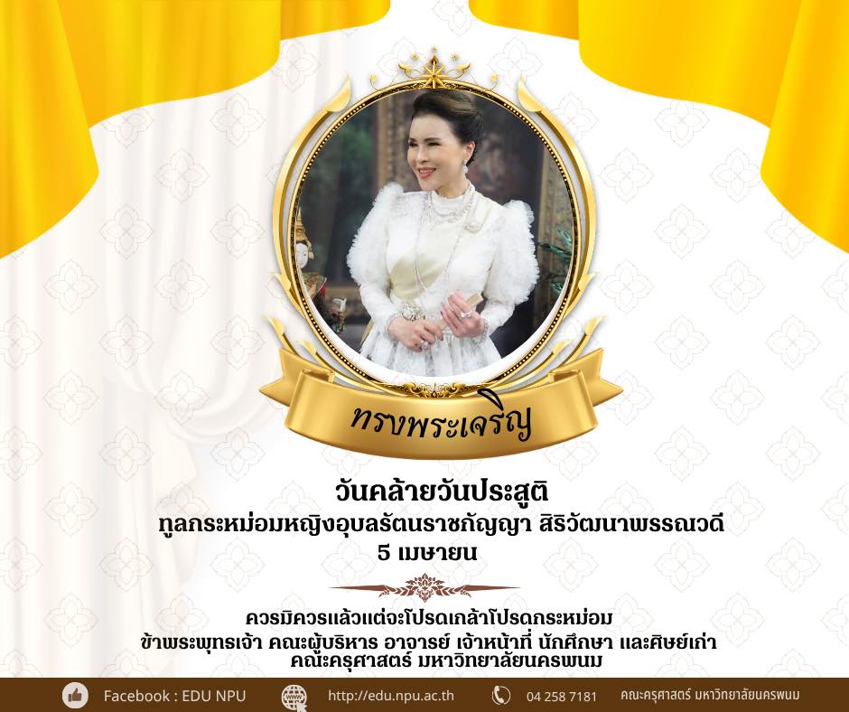 ขอพระองค์ทรงพระเกษมสำราญ มีพระพลานามัยแข็งแรงสมบูรณ์ ทรงเป็นมิ่งขวัญและกำลังใจแก่ปวงชนชาวไทยสืบไป ด้วยเกล้าด้วยกระหม่อม ข้าพระพุทธเจ้า คณะผู้บริหาร คณาจารย์ บุคลากร นักศึกษา และศิษย์เก่า คณะครุศาสตร์ มหาวิทยาลัยนครพนม