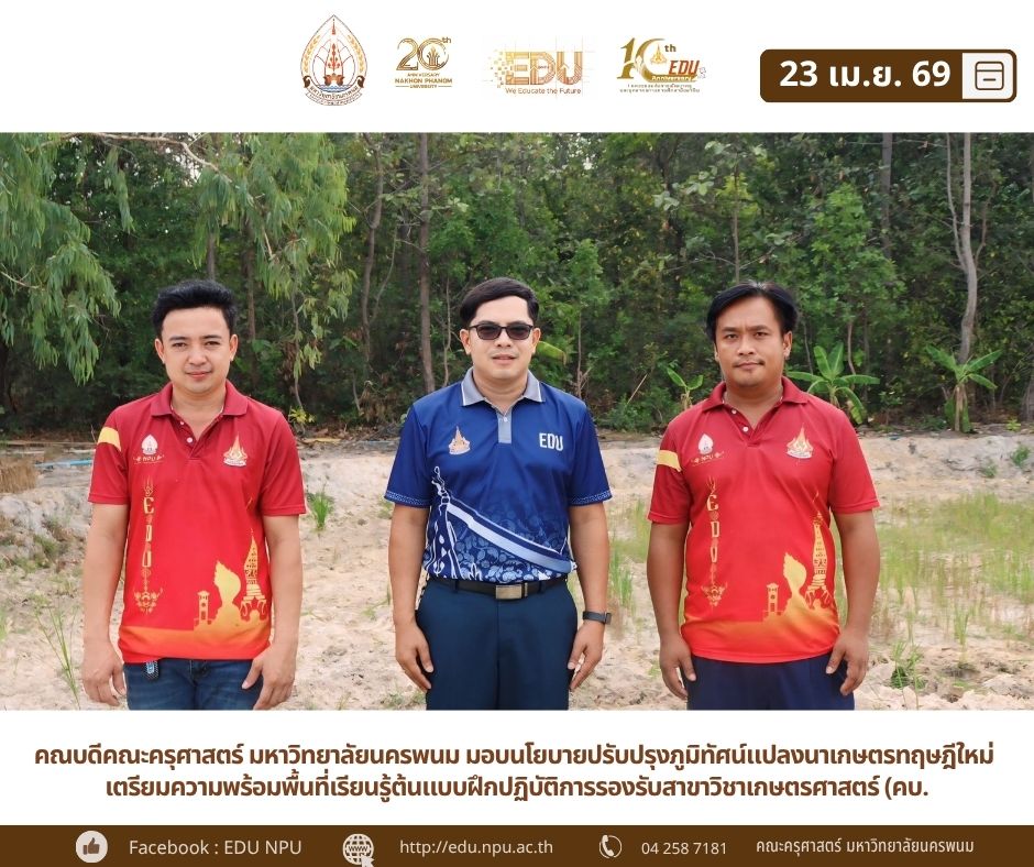 āļŠāļģāļŦāļĢāļąāļšāļāļēāļĢāļ›āļĢāļąāļšāļ›āļĢāļļāļ‡āđāļ›āļĨāļ‡āļ™āļēāđ€āļāļĐāļ•āļĢāļ—āļĪāļĐāļŽāļĩāđƒāļŦāļĄāđˆāđƒāļ™āļ„āļĢāļąāđ‰āļ‡āļ™āļĩāđ‰ āļĄāļĩāļ§āļąāļ•āļ–āļļāļ›āļĢāļ°āļŠāļ‡āļ„āđŒāļŦāļĨāļąāļāđ€āļžāļ·āđˆāļ­āđ€āļ•āļĢāļĩāļĒāļĄāļ„āļ§āļēāļĄāļžāļĢāđ‰āļ­āļĄāļ‚āļ­āļ‡āļžāļ·āđ‰āļ™āļ—āļĩāđˆāđƒāļŦāđ‰āļŠāļ­āļ”āļ„āļĨāđ‰āļ­āļ‡āļāļąāļšāļĄāļēāļ•āļĢāļāļēāļ™āļāļēāļĢāļˆāļąāļ”āļāļēāļĢāđ€āļĢāļĩāļĒāļ™āļāļēāļĢāļŠāļ­āļ™āļ‚āļ­āļ‡ āļŠāļēāļ‚āļēāļ§āļīāļŠāļēāđ€āļāļĐāļ•āļĢāļĻāļēāļŠāļ•āļĢāđŒ(āļ„āļš.) āđ‚āļ”āļĒāļĄāļļāđˆāļ‡āļŦāļ§āļąāļ‡āđƒāļŦāđ‰āđāļ›āļĨāļ‡āđāļ›āļĨāļ‡āļ™āļēāđ€āļāļĐāļ•āļĢāļ—āļĪāļĐāļŽāļĩāđƒāļŦāļĄāđˆāđāļŦāđˆāļ‡āļ™āļĩāđ‰āđ€āļ›āđ‡āļ™āļžāļ·āđ‰āļ™āļ—āļĩāđˆāļŠāļēāļ˜āļīāļ• āļ‹āļķāđˆāļ‡āļˆāļ°āđ€āļ›āđ‡āļ™āđāļŦāļĨāđˆāļ‡āđ€āļĢāļĩāļĒāļ™āļĢāļđāđ‰āļ āļēāļ„āļ›āļāļīāļšāļąāļ•āļīāļ—āļĩāđˆāđƒāļŦāđ‰āļ™āļąāļāļĻāļķāļāļĐāļēāđ„āļ”āđ‰āļĨāļ‡āļĄāļ·āļ­āļ›āļāļīāļšāļąāļ•āļīāļāļēāļĢāļˆāļĢāļīāļ‡āļāđˆāļ­āļ™āļ­āļ­āļāļāļķāļāļ›āļāļīāļšāļąāļ•āļīāļāļēāļĢāļŠāļ­āļ™āđƒāļ™āļŠāļ–āļēāļ™āļĻāļķāļāļĐāļē āļ—āđˆāļēāļ™āļ„āļ“āļšāļ”āļĩ āđ€āļ™āđ‰āļ™āļĒāđ‰āļģāļ–āļķāļ‡āļāļēāļĢāļˆāļąāļ”āļŠāļĢāļĢāļžāļ·āđ‰āļ™āļ—āļĩāđˆāđƒāļŦāđ‰āđ€āļāļīāļ”āļ›āļĢāļ°āđ‚āļĒāļŠāļ™āđŒāļŠāļđāļ‡āļŠāļļāļ” āļ—āļąāđ‰āļ‡āđƒāļ™āļ”āđ‰āļēāļ™āļāļēāļĢāđ€āļāļĐāļ•āļĢāļœāļŠāļĄāļœāļŠāļēāļ™ āļāļēāļĢāļˆāļąāļ”āļāļēāļĢāļĢāļ°āļšāļšāļ™āđ‰āļģ āđāļĨāļ°āļāļēāļĢāļŠāļĢāđ‰āļēāļ‡āļšāļĢāļĢāļĒāļēāļāļēāļĻāļ—āļĩāđˆāđ€āļ­āļ·āđ‰āļ­āļ•āđˆāļ­āļāļēāļĢāđ€āļĢāļĩāļĒāļ™āļĢāļđāđ‰
