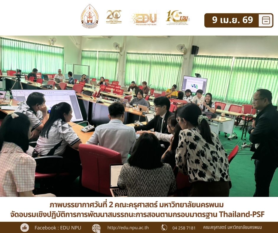 āļāđˆāļēāļĒāļ§āļīāļŠāļēāļāļēāļĢāđāļĨāļ°āļ§āļīāļŠāļēāļŠāļĩāļžāļ„āļĢāļđ āļ„āļ“āļ°āļ„āļĢāļļāļĻāļēāļŠāļ•āļĢāđŒ āļĄāļŦāļēāļ§āļīāļ—āļĒāļēāļĨāļąāļĒāļ™āļ„āļĢāļžāļ™āļĄ āļ”āļģāđ€āļ™āļīāļ™āļāļīāļˆāļāļĢāļĢāļĄāļ•āđˆāļ­āđ€āļ™āļ·āđˆāļ­āļ‡āđ€āļ›āđ‡āļ™āļ§āļąāļ™āļ—āļĩāđˆ 2 āđƒāļ™āđ‚āļ„āļĢāļ‡āļāļēāļĢ "āļāļēāļĢāļ­āļšāļĢāļĄāđ€āļŠāļīāļ‡āļ›āļāļīāļšāļąāļ•āļīāļāļēāļĢāļāļēāļĢāļžāļąāļ’āļ™āļēāļŠāļĄāļĢāļĢāļ–āļ™āļ°āļāļēāļĢāļŠāļ­āļ™āļ•āļēāļĄāļāļĢāļ­āļšāļĄāļēāļ•āļĢāļāļēāļ™ Thailand-PSF" (Thailand Professional Standards Framework) āļ‹āļķāđˆāļ‡āļˆāļąāļ”āļ‚āļķāđ‰āļ™āđƒāļ™āļĢāļ°āļŦāļ§āđˆāļēāļ‡āļ§āļąāļ™āļ—āļĩāđˆ 8-9 āđ€āļĄāļĐāļēāļĒāļ™ 2569 āļšāļĢāļĢāļĒāļēāļāļēāļĻāđƒāļ™āļ§āļąāļ™āļ™āļĩāđ‰ āļ„āļ“āļēāļˆāļēāļĢāļĒāđŒāļœāļđāđ‰āđ€āļ‚āđ‰āļēāļĢāđˆāļ§āļĄāļ­āļšāļĢāļĄāđ„āļ”āđ‰āļ™āļģāđ€āļŠāļ™āļ­āļœāļĨāļ‡āļēāļ™āļˆāļēāļāļāļēāļĢāļāļķāļāļ›āļāļīāļšāļąāļ•āļī (Workshop Showcase) āļžāļĢāđ‰āļ­āļĄāļ—āļąāđ‰āļ‡āļĢāđˆāļ§āļĄāđāļĨāļāđ€āļ›āļĨāļĩāđˆāļĒāļ™āđ€āļĢāļĩāļĒāļ™āļĢāļđāđ‰āđāļĨāļ°āļ§āļīāļžāļēāļāļĐāđŒāđāļ™āļ§āļ—āļēāļ‡āļāļēāļĢāļˆāļąāļ”āļāļēāļĢāđ€āļĢāļĩāļĒāļ™āļāļēāļĢāļŠāļ­āļ™ āđ€āļžāļ·āđˆāļ­āđƒāļŦāđ‰āļŠāļ­āļ”āļ„āļĨāđ‰āļ­āļ‡āļāļąāļšāļāļĢāļ­āļšāļĄāļēāļ•āļĢāļāļēāļ™āļĢāļ°āļ”āļąāļšāļ›āļĢāļ°āđ€āļ—āļĻ